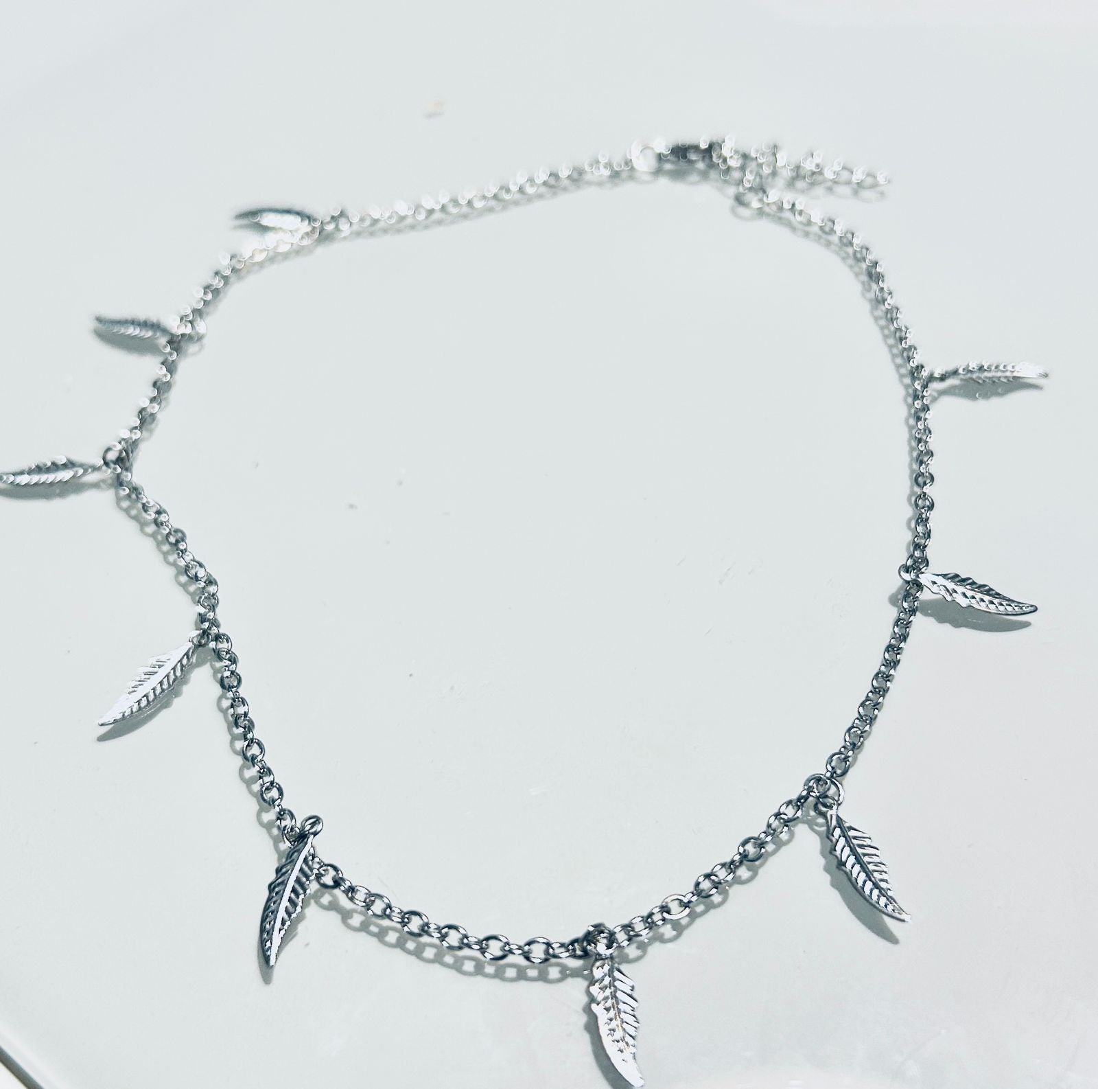 Choker de aço inox hipoalergênico, 8 folhas com detalhes 37 cm
