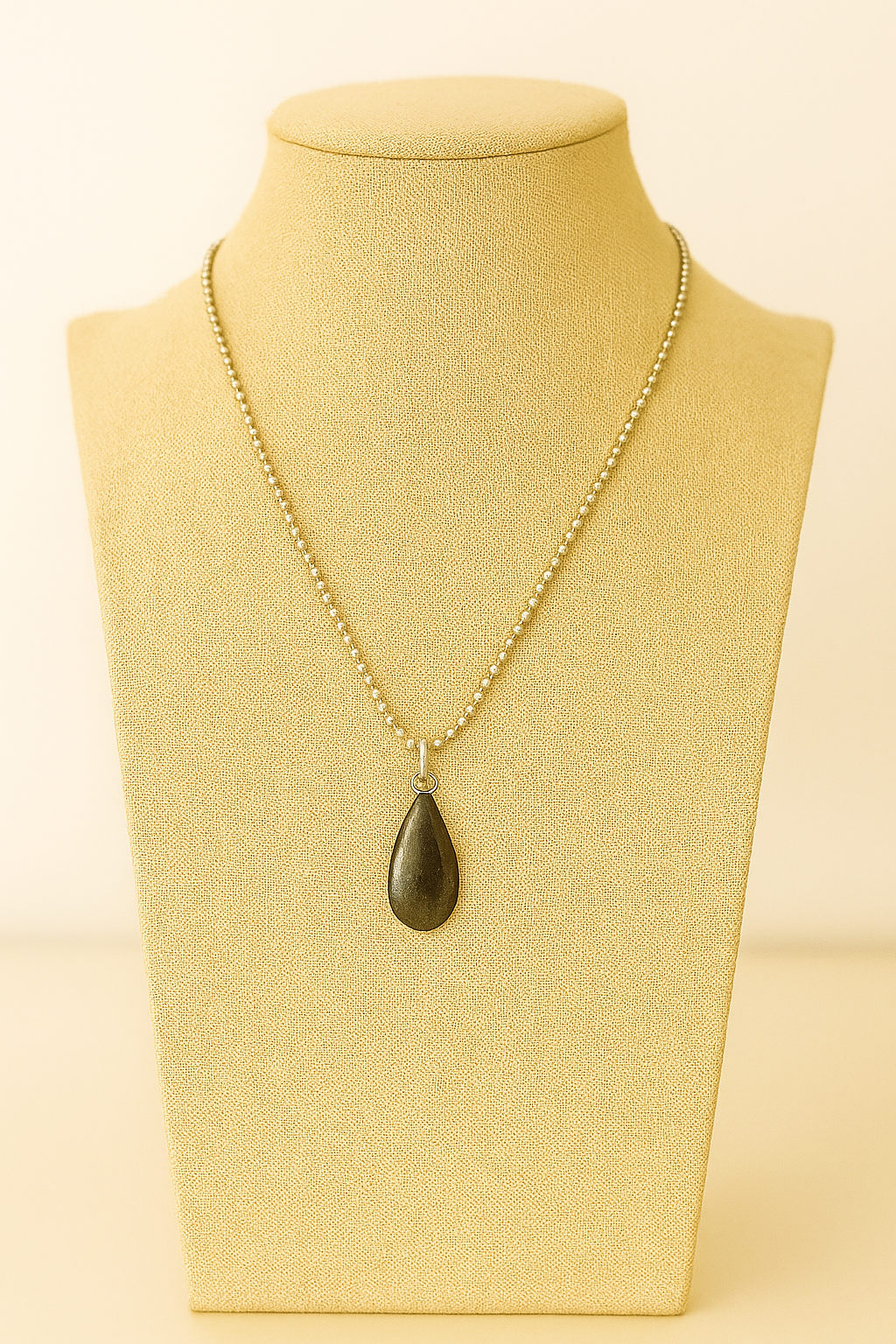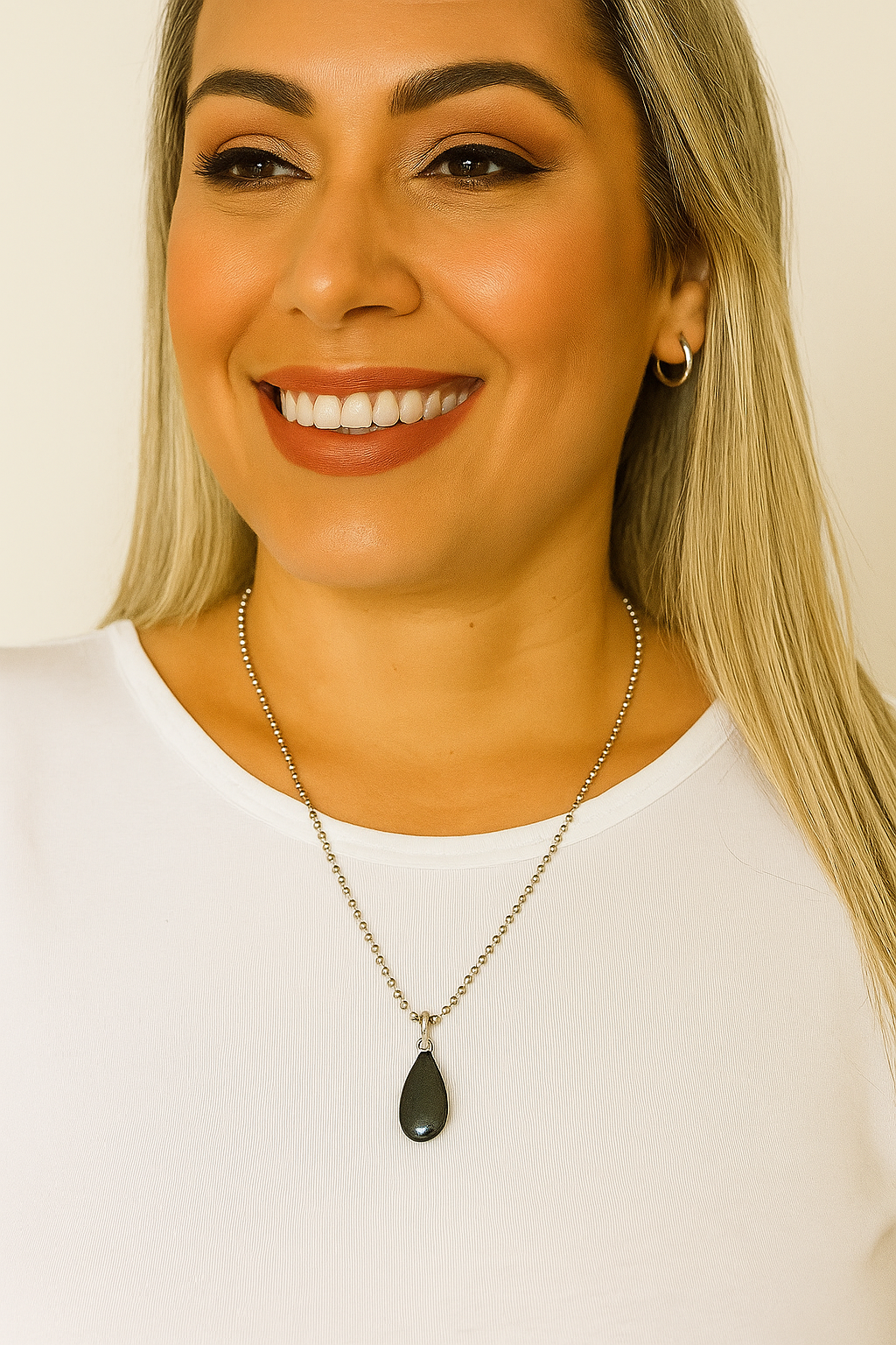 Colar aço inox Mini bolinhas pingente pedra preta hipoalergênico 50 cm - Fecho encaixe