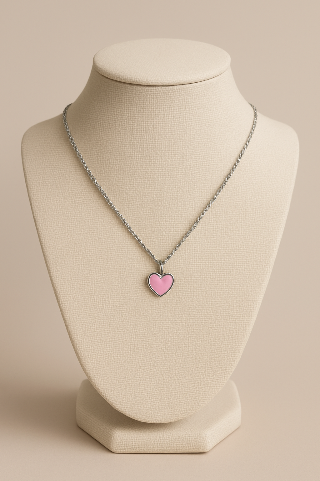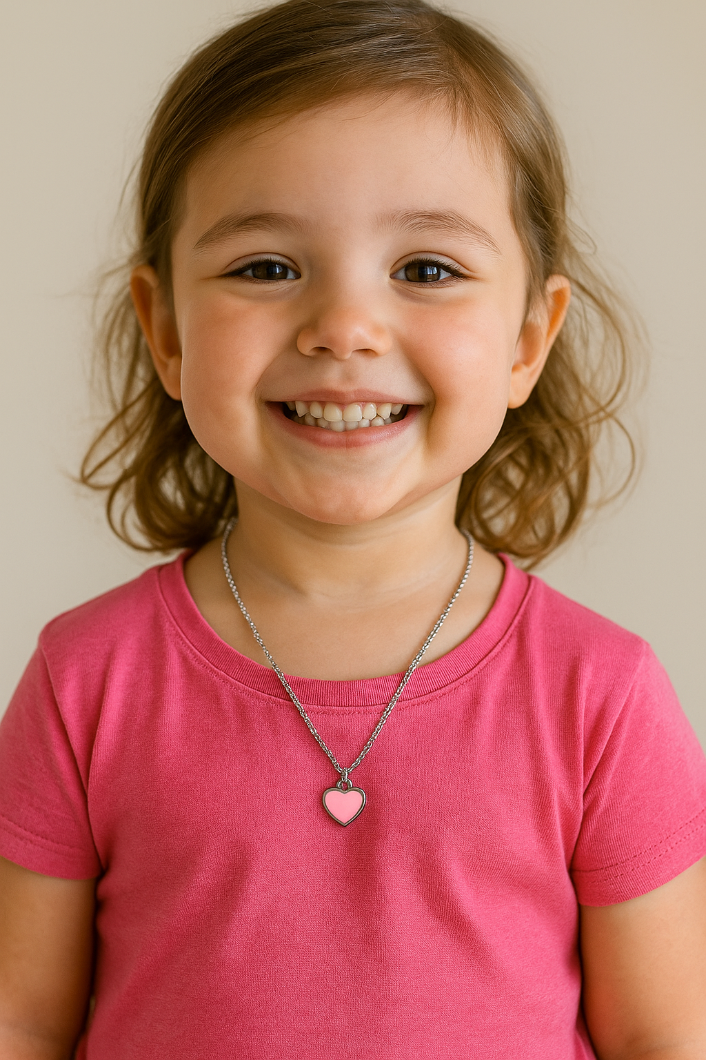 Colar Mini elo português aço inox infantil coração rosa 43 cm