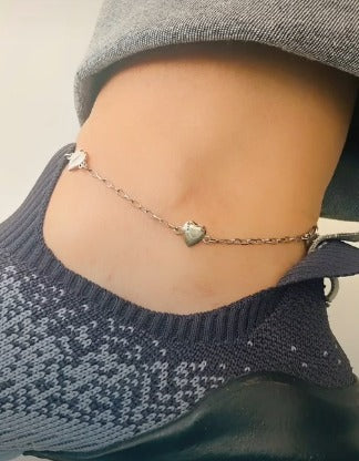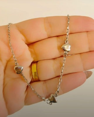 Tornozeleira de aço inox, Três mini corações robusto 23 cm